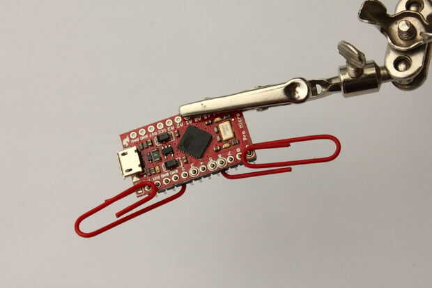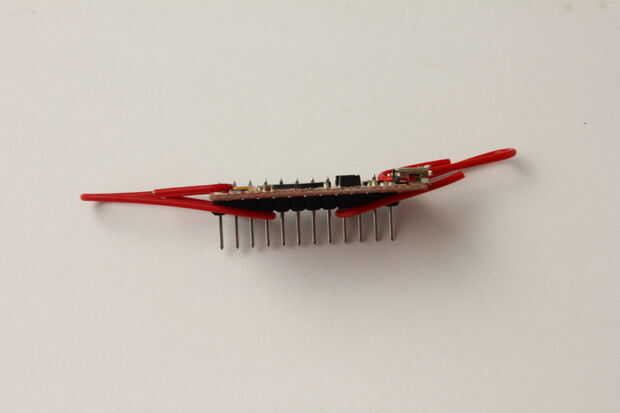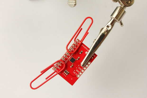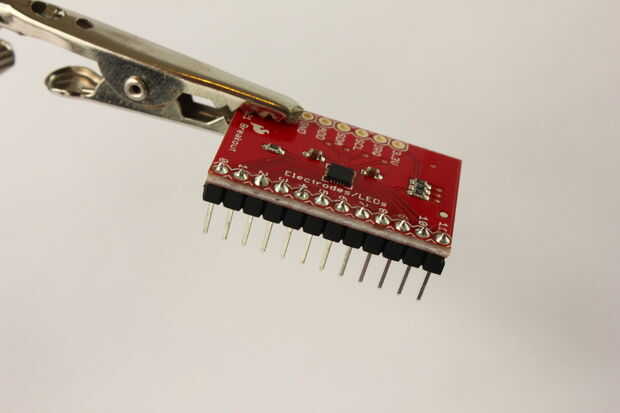 Una vez que tenga 3-4 pines soldados en usted pueden sacar los clips para hacer el resto.