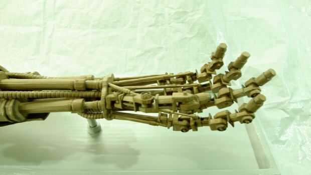 -El principal reto con este modelo fue la gran cantidad de piezas que tenía que construir. Creo que sólo por un dedo que necesitaba algo así como 30 partes. Y cada una de esta partes tomó varios pasos para hacer.