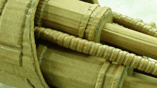 -Los tubos hidráulica realmente ayudan el modelo de vida. para construirlos yo envuelta de cartón que había ablandado por una manguera de plástico. Asegura que el diámetro de la misma quedaría. He utilizado un montón de pegamento, que suavizó el cartón. Esto me dio la posibilidad de doblar en forma una vez que el tubo estaba envuelto. después de que seque pegué una tira pequeña de cartón en un espiral ascendente alrededor del cilindro.