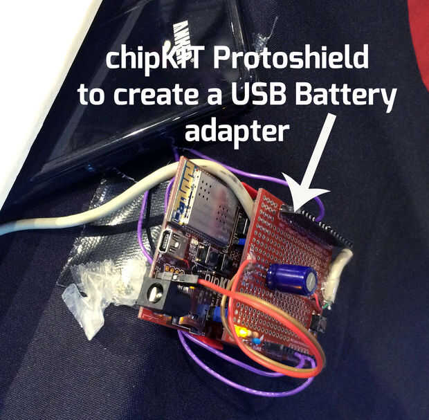 Usando un protoshield de chipKIT, hemos sido capaces de crear una batería USB personalizada