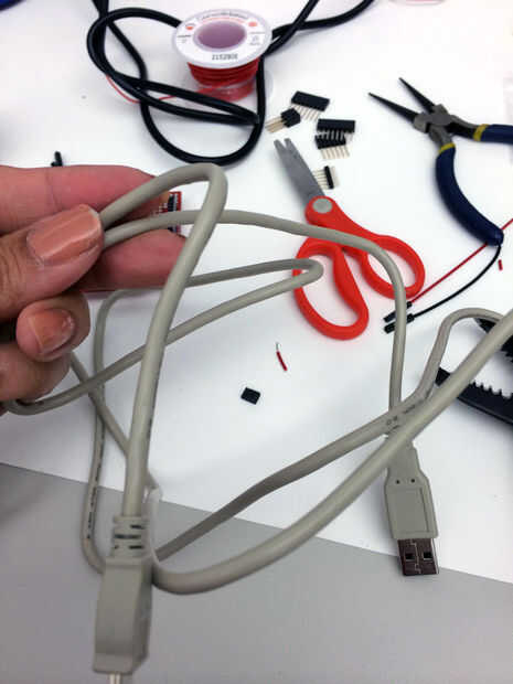 La forma más sencilla que he encontrado para hacer esto es mediante un cable USB viejo que no me importa el corte.
