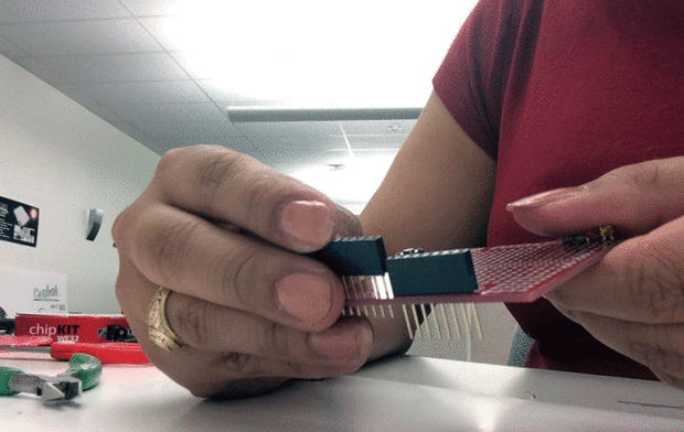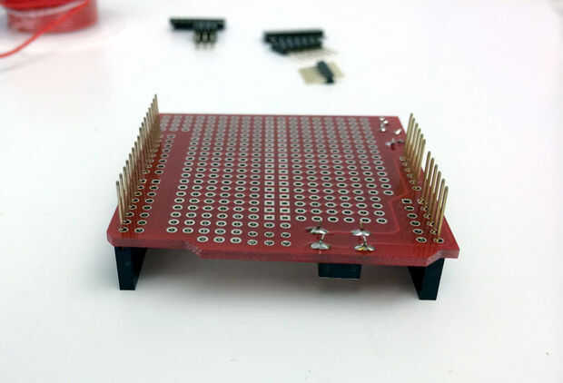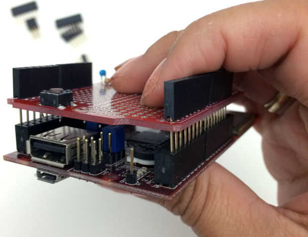 Otra forma es usar un protoboard muerto para mantener los pernos de cabecera en su lugar. Debe utilizar un tablero de muerta porque calor de soldadura puede arruinar los conectores dentro de la Junta.