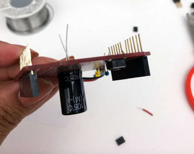 (electrolíticos marcados + y -) de la soldadura y acortar las piernas (como en el paso anterior).