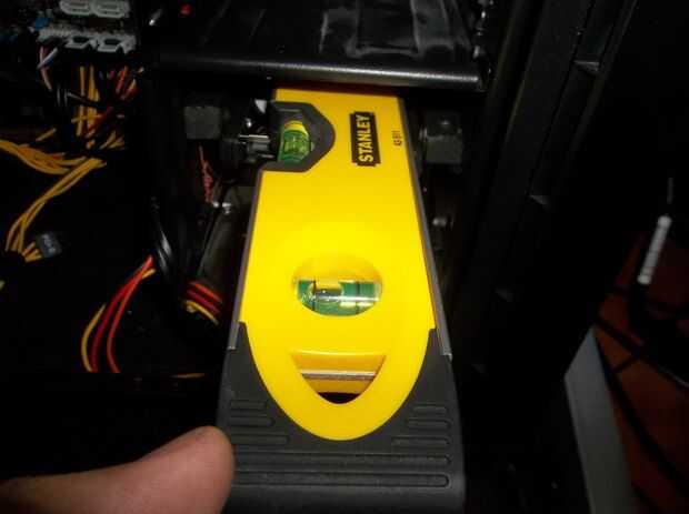 Ya que es casi imposible para el adaptador ser perfectamente recta y mucho puede aumentar la vida de un disco duro, utilice el nivel para colocar perfectamente recta y luego marque los orificios laterales para la perforación. Estos agujeros se utilizará para conectar todo a la canastilla para unidades así que asegúrese de que ellos se alinean adecuadamente, y el disco duro esté perfectamente nivelado.