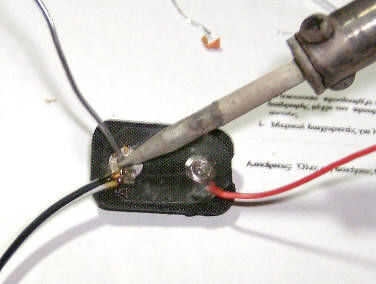 Hola, amigos!hoy que te muestro cómo hacer un soldador de una batería de 6v.Esta es la manera más fácil y el método más seguro! se pone caliente a 60 grados C en sólo 10 segundos.Aquí está la foto de ella! consiste en dos cables + y -.las cosas azul