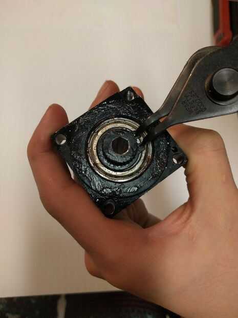 Vuelva a colocar el anillo de retención. Asegúrese de que el anillo esté en el grove en el eje de salida.