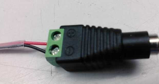 Si utiliza un conector de DC con el tornillo terminal como lo hice, casi listo. Sólo Coloque el cable en y atornille las terminales. Si usted utiliza a un DC jack de algunos desechos, más que probable que será soldar los cables en.