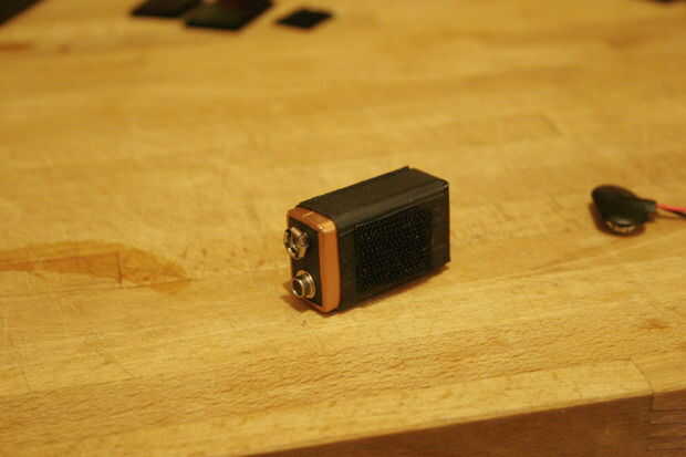 Deslizar simplemente montar una sección de la llanta sobre la batería de 9V y recortar a la longitud.
