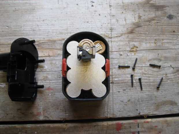 Desmontar la batería vieja, excepto los tornillos y Separe cuidadosamente los clips del metal fuera de la batería, puede secar ajuste el extremo terminal hacia dentro la parte superior para ver cómo encaja y que terminal es positivo y negativo.