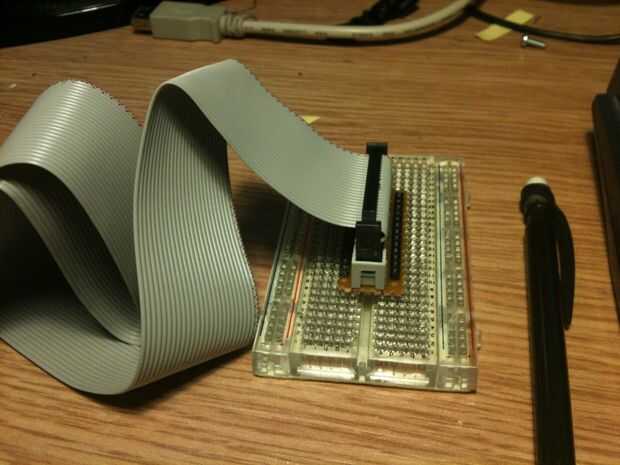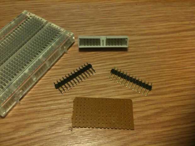 Así que vamos a construir un pequeño adaptador que conectará las señales desde la cabecera de expansión de la RPi en su protoboard.