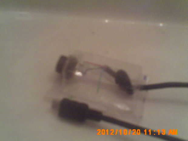 Puede utilizar cinta aislante para envolver para arriba, usando algún tipo de pequeño recipiente es mejor. Solo usé la tapa de plástico del paquete del vino en algo rápido, probablemente hará que algo mejor más adelante.