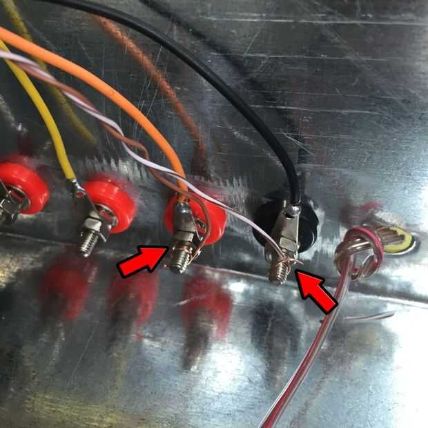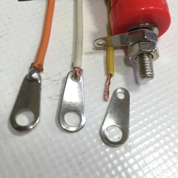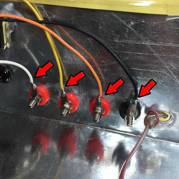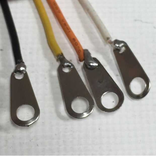 Naranja, amarillo, blanco y negro alambre de la soldadura y conectarse vinculante puestos como se muestra