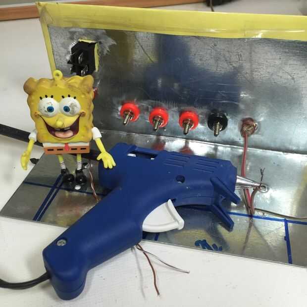 Utilice pegamento caliente para fijar LED, interruptor y cable