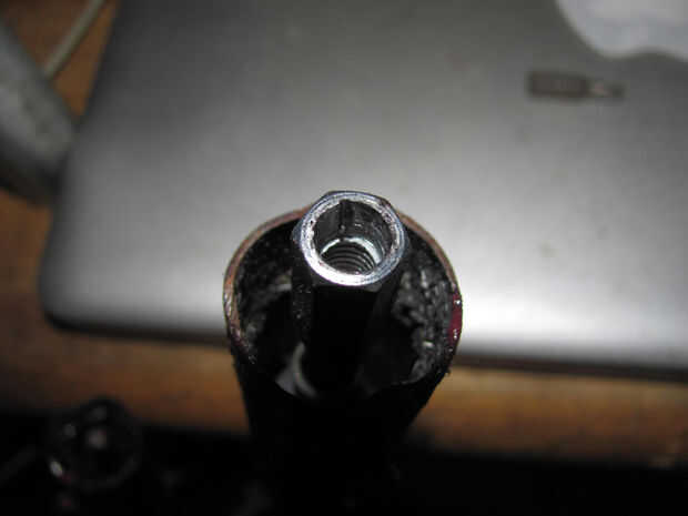 Necesitaba acoplar dos extremos de 1/4" eje cuadrado, usé un acoplador de barra hexagonal de rosca. El interior eran de hilos de rosca 1/4 "x 20. Taladró el centro con un 1/4" taladro del pedacito y luego sacó a colación los extremos con un carburo de un #2 Phillips Broca de velocidad. Mayoría de velocidad de bits es 1/4" hexagonal y de bajo costo. Que tengo mucha de sobra. Llevó a cabo la broca en entenallas enfrentaron en una esmeriladora de banco y martillado a cada extremo del acoplador a espetar un orificio cuadrado para cada lado. No vaya a través de todo el camino con la brocha porque esto permitiría que el acoplador se deslice un extremo. Si han juntado sabes que el acoplador tiene una cresta en el medio dentro de cada pieza de tubería de PVC sólo va hasta la mitad. Misma idea.