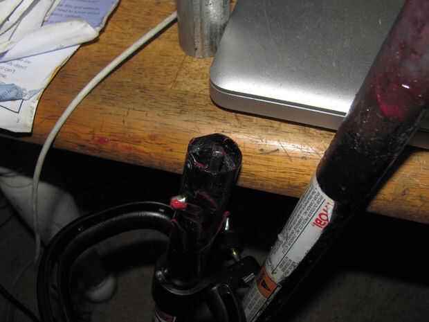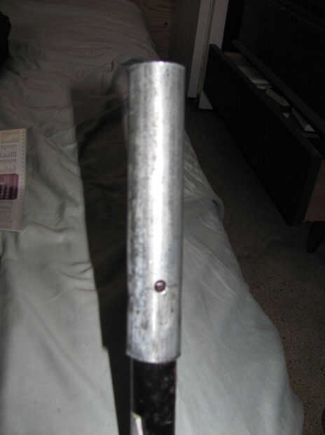 Es el ajuste más cercano para una manga de acero 1" emt. Tengo pedazos de desecho poner alrededor, así que corte un trozo de un pie de largo. conducto eléctrico 1" es un poco flojo, usé el extremo redondeado de un martillo de bola a abollar el tubo para que sea cómodo dentro. Esta manera no tenía que dividir el tubo y manguera Abrazaderas para apretarlo.