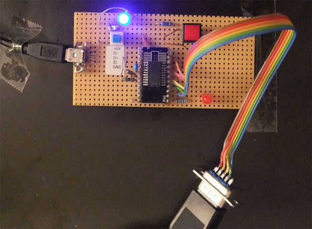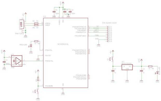 Ver las imágenes de la Junta soldada y el esquema. Archivo PDF de águila: http://www.frank-buss.de/joystickadapter/eagle/joystickadapter.sch