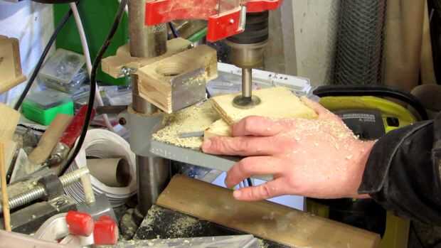 La idea principal y lo más importante aquí es mantener el agujero dentro del marco que pega ya. La mejor manera de hacer eso (y también lo que debería haber hecho) es para saber donde estará el agujero del taladro desde el lado del marco. También, recuerde poner una placa de soporte debajo de la pieza para evitar que arranque cuando taladre a través de.