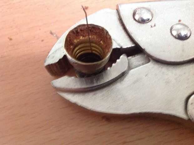Seguir imágenes para preparar la bombilla vieja para el adaptador.