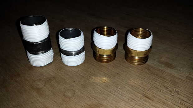 Comience a todo lo envolver que es una rosca con cinta de teflón. Siempre es una buena práctica para envolver la cinta para no doblar hacia atrás cuando vaya a rosca todo juntos. Para averiguar qué camino a seguir, mira al final que te vas a envolver en la cinta de teflón e ir hacia la derecha con él. Una vez que todo lo es, vaya al paso siguiente.