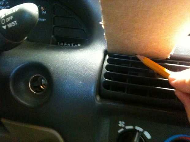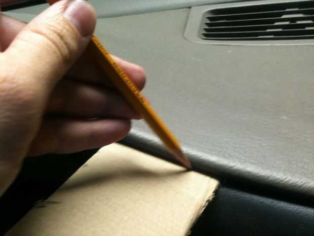 -Fina lámina de aluminio o estaño. Debe ser lo suficientemente fuerte para mantener su forma pero fina suficiente para cuña entre las piezas de moldura en el salpicadero de su coche. (He encontrado algunos en una tienda de artículos de arte con el modelo de hacer cosas por menos de $5. Estoy seguro de que usted podría encontrar algo similar en una tienda o ferretería. Usted podría probablemente salvar una pieza adecuada de metal flexible suave de un envase de la lata o algún otro producto.)