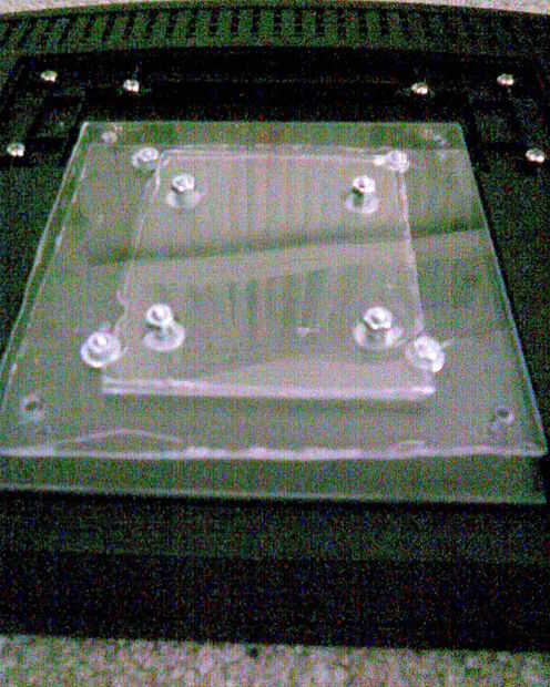 tengo un monitor de pantalla táctil plana PT-120 para un proyecto para instalar una computadora en mi cocina en un soporte debajo del mostrador. Desafortunadamente, Planar no hizo el PT-120 VESA compatible, mientras que el montaje que estoy usando es VESA estándar. He creado una placa de adaptador con policarbonato.