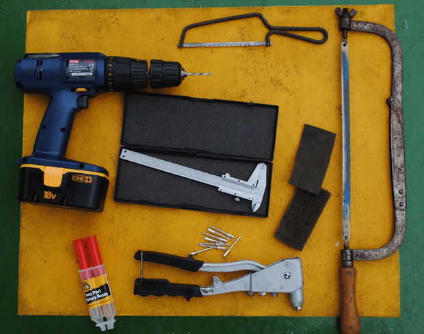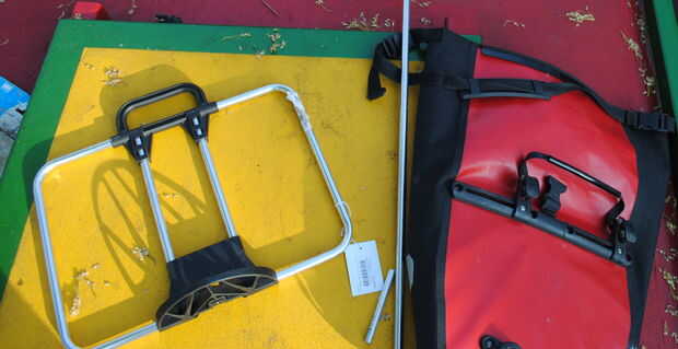 Si tienes todas las herramientas y una alforja de Ortieb, el costo de esto debe ser entre £20 y £30. El único material que necesita además el marco de la bolsa de Brompton (£20) son 2 postes de aluminio que no deberían costar mucho (o van a ser gratis si conoces a las personas adecuadas!