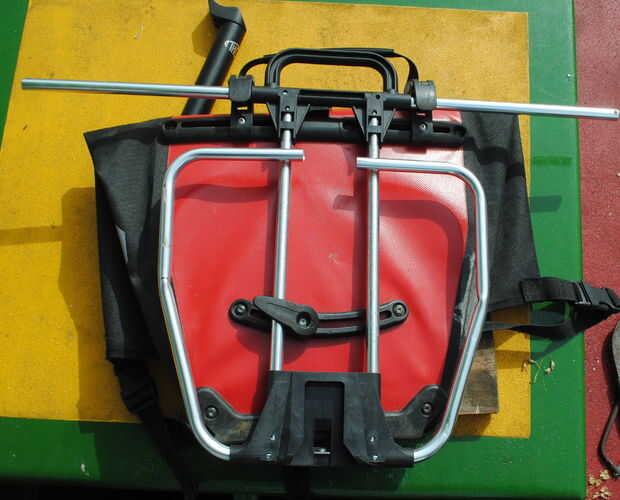 Con ignorancia y fuerza bruta, doble los postes exteriores a la forma de su alforja. También deben ampliarse más adelante, así que decidir dónde colocar las curvas por consiguiente.