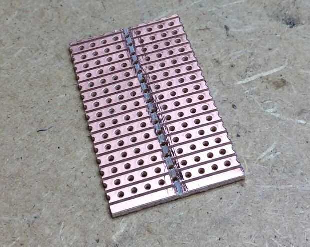 Necesita romper la conexión de la Junta de tira entre las 2 líneas de pernos, utilice la sierra para quitar el cobre en una columna de agujeros por el medio de la Junta.