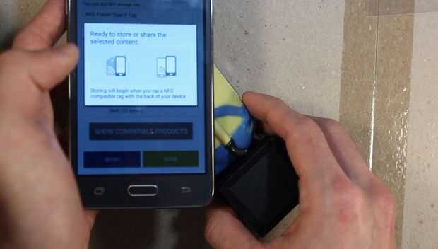 Sostenga el teléfono cerca de la etiqueta NFC para escribir el conjunto de datos en la etiqueta.