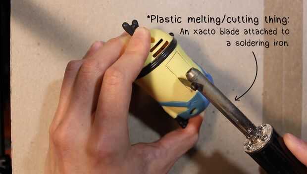 Trazar la forma del puerto PS/2 del juguete y cortar con nuestra herramienta de corte de plástico (una Xacto hoja adjunta a un soldador).