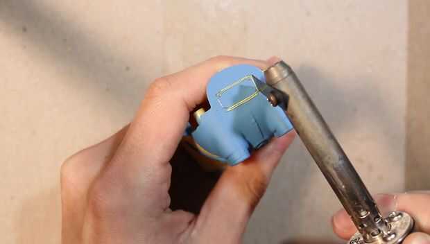 Luego trace y recorte la forma del puerto en la parte inferior de nuestro juguete.