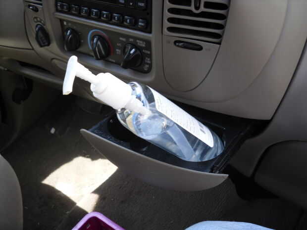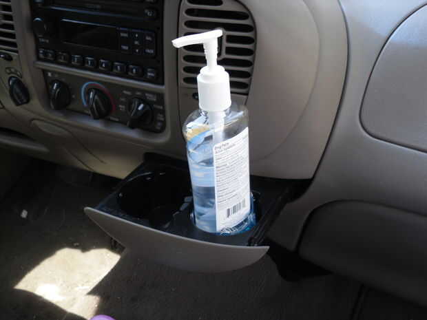 mi esposa compró una botella de desinfectante de la mano para mantener en su carro. Le gusta mantener en su soporte de vaso para que está a mano cuando sea necesario, pero porque la botella es tan estrecha que tiende a flop alrededor cuando ella está conduciendo. Ella encuentra esto un poco molesto y me preguntó con una forma de solucionar este problema. Originalmente había pensado simplemente podríamos obtener un resorte grande y colocar entre el borde de lo portavasos y la botella para mantenerlo en su lugar. Pero mi esposa se mostró seguro de que perdería la primavera. Quería a algún tipo de inserto que se estabilizaría la botella y todavía podría eliminarse fácilmente si una bebida siempre es necesario para residir allí. Había combinado estas dos ideas para la siguiente solución.
