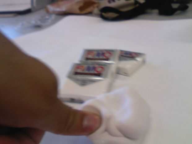 Usted lavarse las manos porque la suciedad se muestra en la arcilla. Abra la arcilla y trabajar hasta que quede bastante suave a la forma. Al principio la arcilla es bastante difícil así que esto puede tomar un tiempo. No utiliza agua.