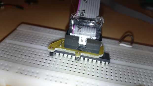 Para resolver este problema, me imagino un PCB simple apilado en el μC con un conector ICSP