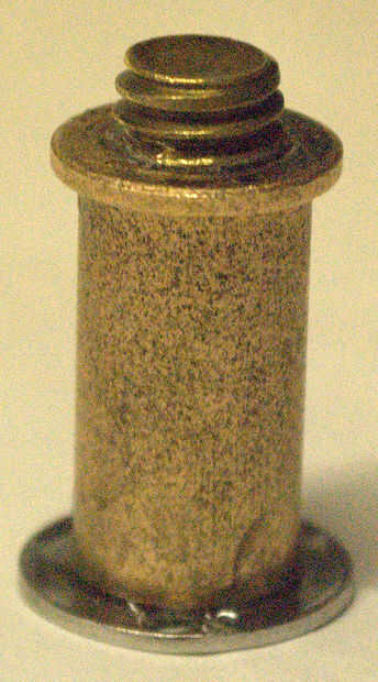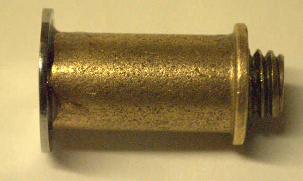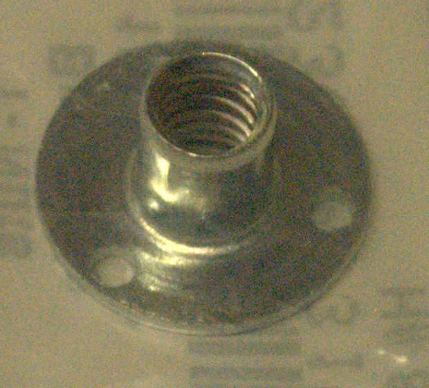 El adaptador está hecho de piezas que compré en un local Lowes Home Center: el cuerpo, un bronce 3/8 x 5/8 x 1 "manga de cojinete; la "base" es un 1/4-20 uñas en t tuerca (el martillo de unos tienen rebordes que conseguirá de la manera). Yo corte una sección de un tornillo 16 latón 3/8 x y utilizar para el lado de 3/8.