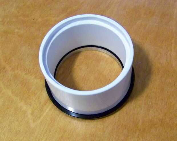 Entonces sólo centro arriba y pegamento en la rosca trasera. Puesto que este hilo posterior tiene una cara plana, he dejado el otro extremo del tubo solamente. Para un anillo de filtro regular como el hardware posterior, la parte posterior del tubo probablemente tendría que ser escariados para adaptarse así.