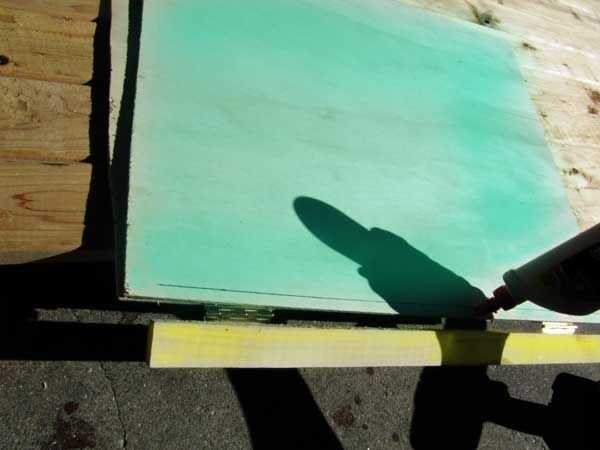 Voltear el labio hacia abajo y aplica pegamento en el borde de la hoja superior (cian) hasta la línea del marcador