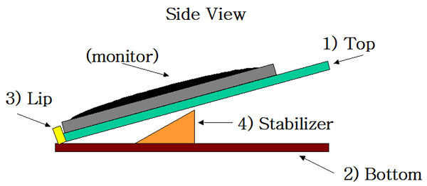 - Un estabilizador (dos wedgies de triángulo) (usado para ajustar el ángulo del monitor)