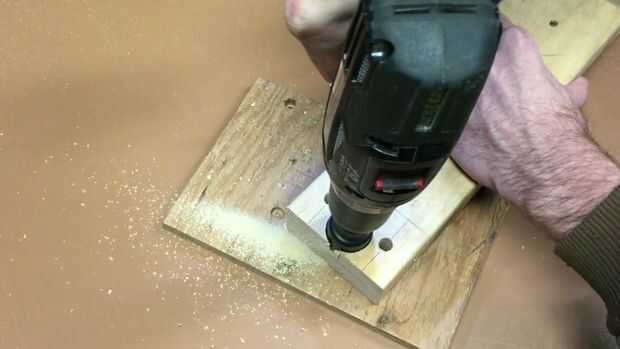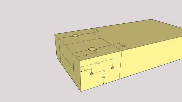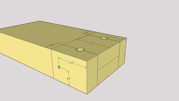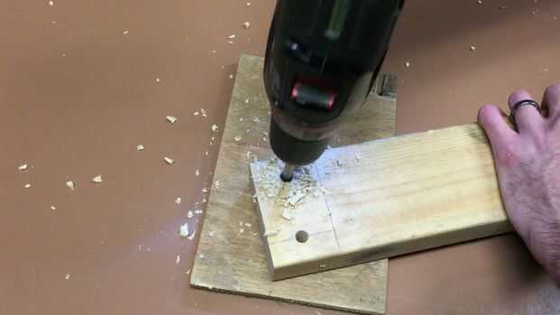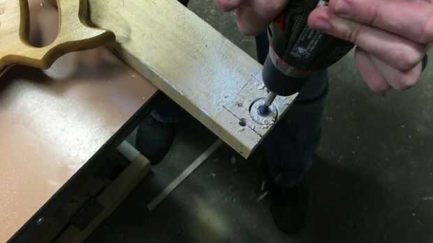 Usé un 1-1/4" agujero Sierra para cortar una perilla en la parte central de la 2 x 4 (imagen 5). Sólo corté 3/4" de grosor. Te corté el grueso de la perilla en el paso siguiente. No olvides hacer un cajeado para la cabeza del perno para sentarse en la (imagen 6)