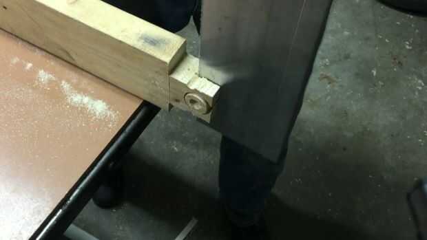 Nota: originalmente corté mi mando para ser 3/4" densamente. El tornillo de 3" que compré era demasiado corto. Más tarde hice un pomo de madera contrachapada de 1/2" por lo que pude termino con los materiales que tenía. Un tornillo de 4" habría sido tiempo suficiente para usar el mando de 3/4" de espesor.