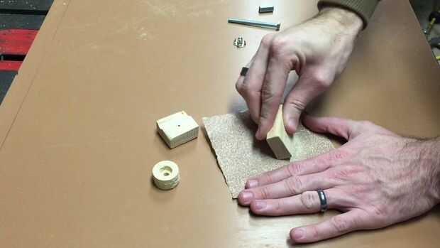 Levante el 2 x 4 en su borde y cortar la perilla al espesor deseado (imagen 5).