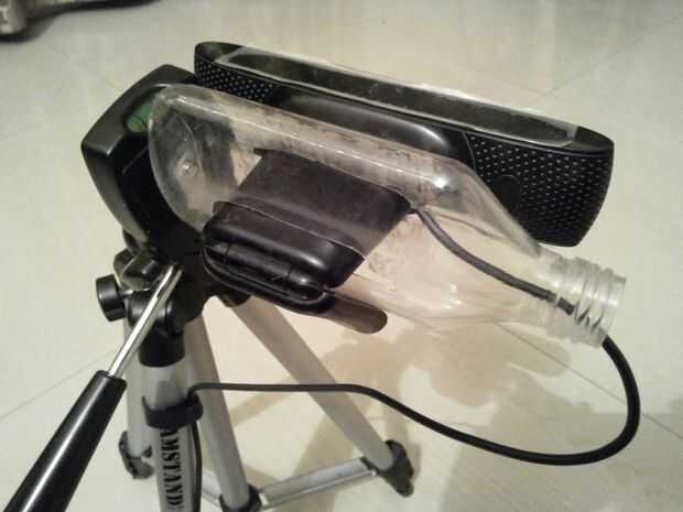Siguiente, esta idea podría ampliarse para otros dispositivos como el micrófono direccional, una linterna, un teléfono inteligente etc.. El teléfono inteligente en un trípode sería muy útil por ejemplo cuando tiempo extinguido fotos o incluso ir un paso más allá y montar dos smartphones en una botella para hacer clic en imágenes estereoscópicas 3D videos.