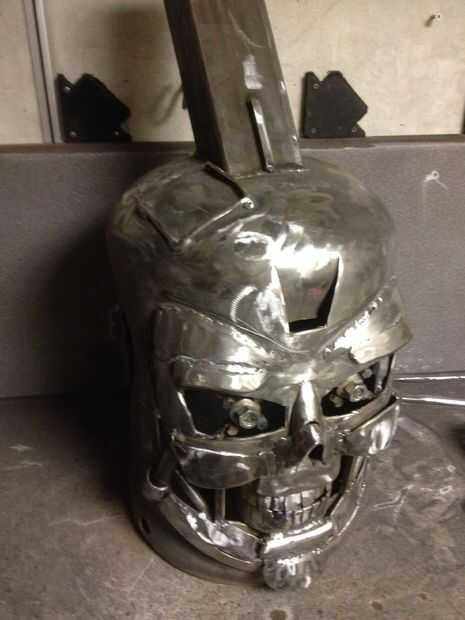 he utilizado algunos trozos y fuera de cortes para agregar detalles a la chimenea. Aunque terminator no tenemos oídos, quería añadir algunos detalles a los lados de la cabeza. Solía superior de dos botellas de gas para esto que trabajaban bien.