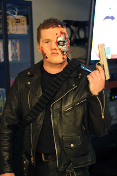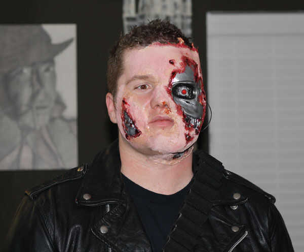 Uno de los problemas que tuvo que superar fue la instalación de la pieza de resina. Goma de espíritu no funciona en la resina (no soooorrta, pero las pruebas no funcionaba). Hemos estado utilizando los pasos de terminator hechos por el poder oscuro como una guía y ocupó la pieza de resina en lugar de una capa de piel que iba encima (su se hizo de tipo de gelatina, no látex). Yo estaba preocupado de que no sería lo suficientemente seguro.