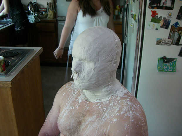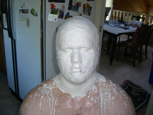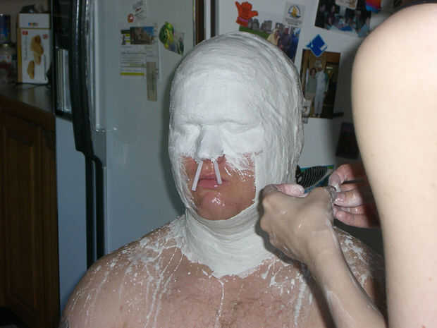 No sólo ir y envolver la cabeza con largas hojas de yeso y esperar a cortarlo. No use yeso regular o yeso y bofetada en la. Si usted está incómoda con tener paja encima de la nariz, puedes dejar la parte inferior de la nariz abierta. Y una señal de' seguridad' a la persona ser casted en vida, por si acaso.
