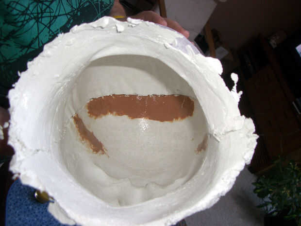 Después de que las piezas se han secado (recomiendo dejarlo toda la noche), quitar cualquier vaselina exceso adicional con alcohol isopropílico. Rellene las áreas problemas con plastilina. Poner las piezas superiores juntos y seguro con una capa de tiras de yeso de París a lo largo de la costura.