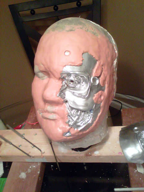Esculpir una pieza de piel/pulpa que irá sobre la resina semimáscara; te ayudarán a sostener la pieza de resina en lugar, y te hacen parecer wicked cool. El bro ponga una copia de la mascarilla de resina sobre la cabeza echada antes de que empezó a esculpir, para obtener una skinpiece equipada.