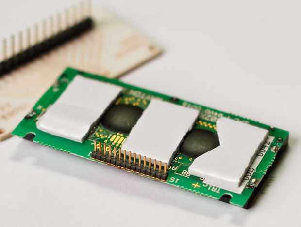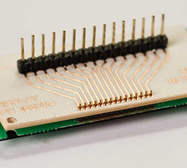 Aplique cinta doble en la parte posterior de la Junta de la pantalla para colocar el pcb. Cuando este está en posición puede soldar las terminales delgadas.