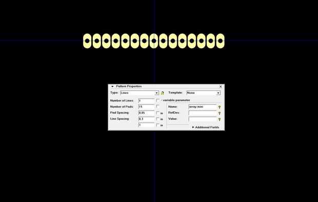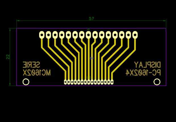 Diptrace he creado dos matrices de cojín personalizado y conecté con pistas regulares. He intentado mantener más grande las pastillas que pude, porque me di cuenta de pastillas que a veces muy poco separados de la Junta durante el proceso de soldadura o debido a una tensión mecánica del componente. Por la misma razón que dibujé los pads con una forma elíptica. Espacio libre entre los cojines del pequeño es muy delgada ser exactos es aproximadamente 0,2 mm y probablemente será inadecuado para mayor corriente, pero funciona bien en este proyecto donde LCD requiere corrientes muy bajas.