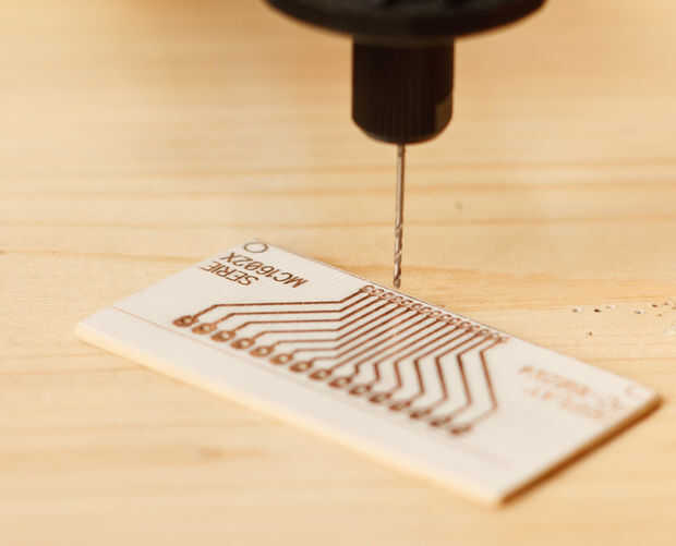 Tiempo para perforar los agujeros. Por desgracia mi estrecho es sólo de 0,8 mm y en este caso sería mejor un poco más pequeño. Sugiero para probar con 0,6 mm. Sin embargo fui capaz de no cortar las pastillas por la mitad.